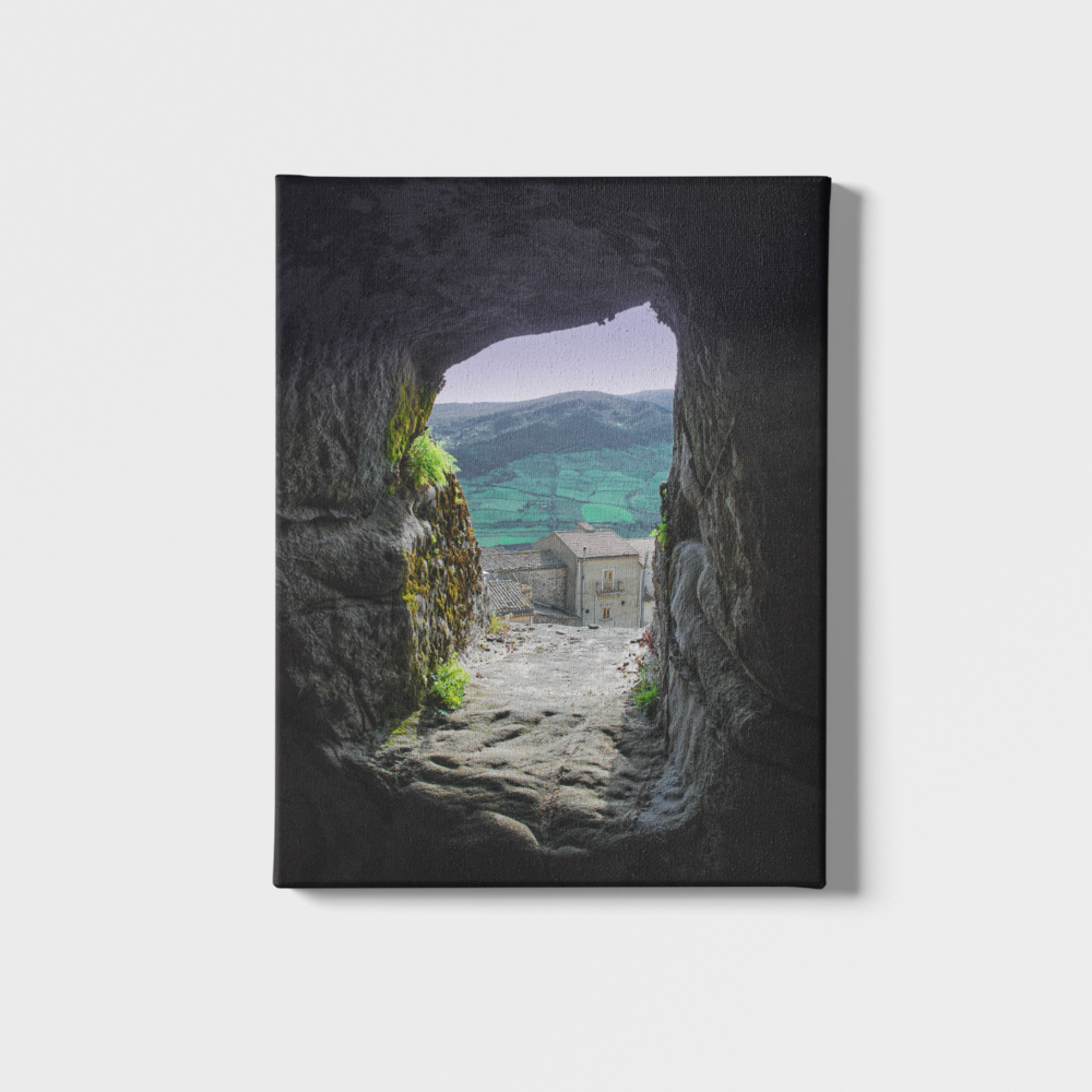 Situato nella Sicilia centrale, tra i monti Nebrodi e le Madonie, è un borgo costruito nelle rocce di arenaria. Il suo nome deriva dal greco “spelaion” ovvero grotta infatti queste conformazioni sono una caratteristica del suo territorio. L'immagine che vedi è stata realizzata da una delle tante finestre del castello che si affacciano su questo caratteristico borgo.
